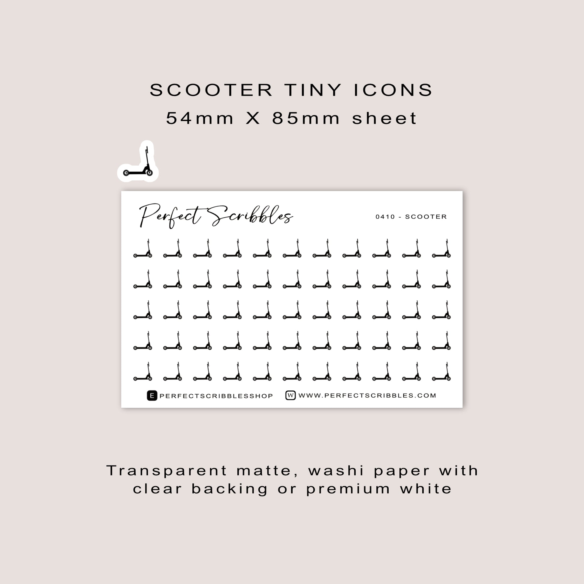 SCOOTER Tiny Icon Planner Stickers | Minimal | Credit Card Sized Sheet