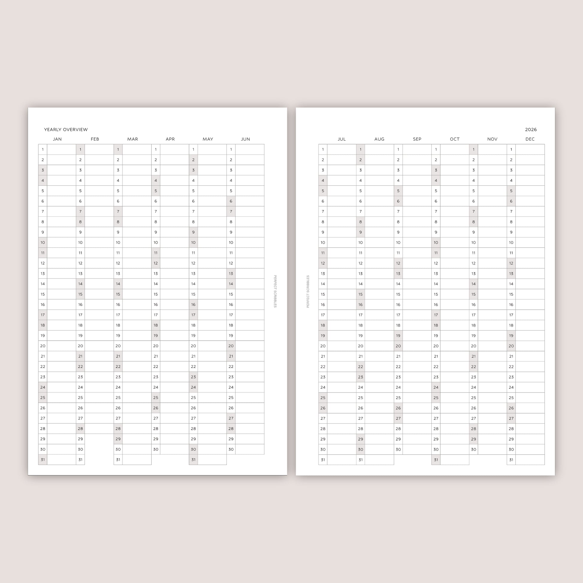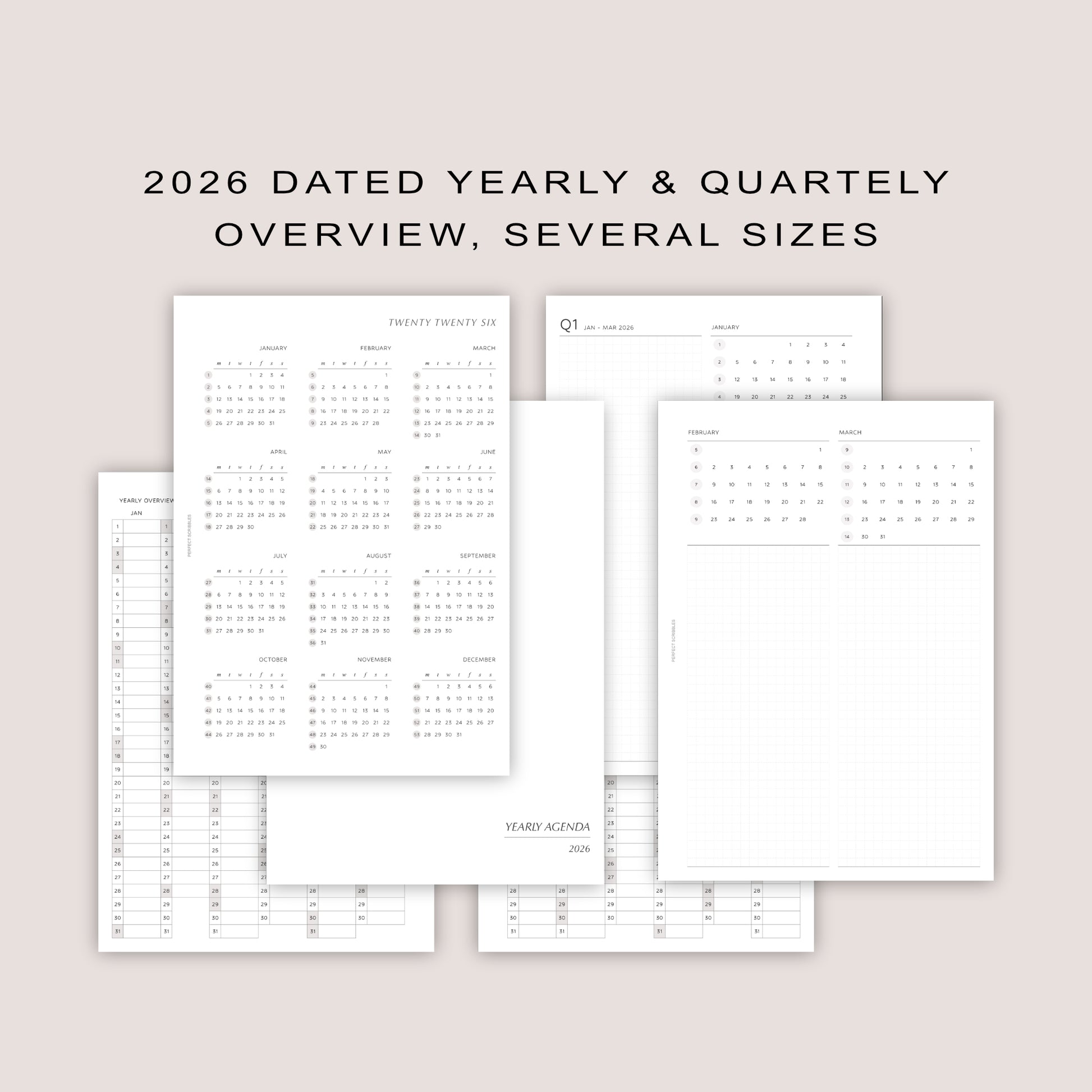 2026 DATED Yearly Overview and Quarterly Planner Inserts | PRINTED