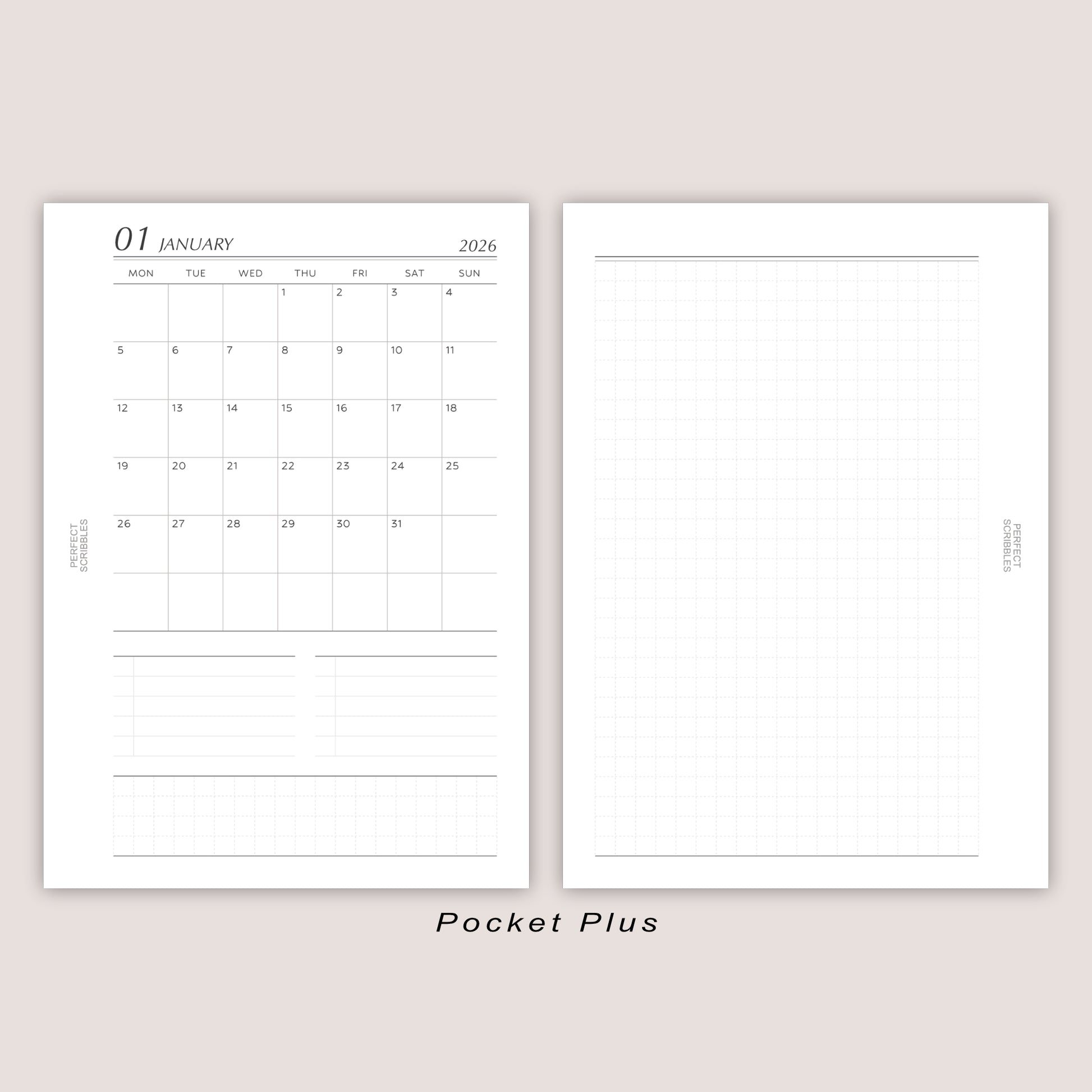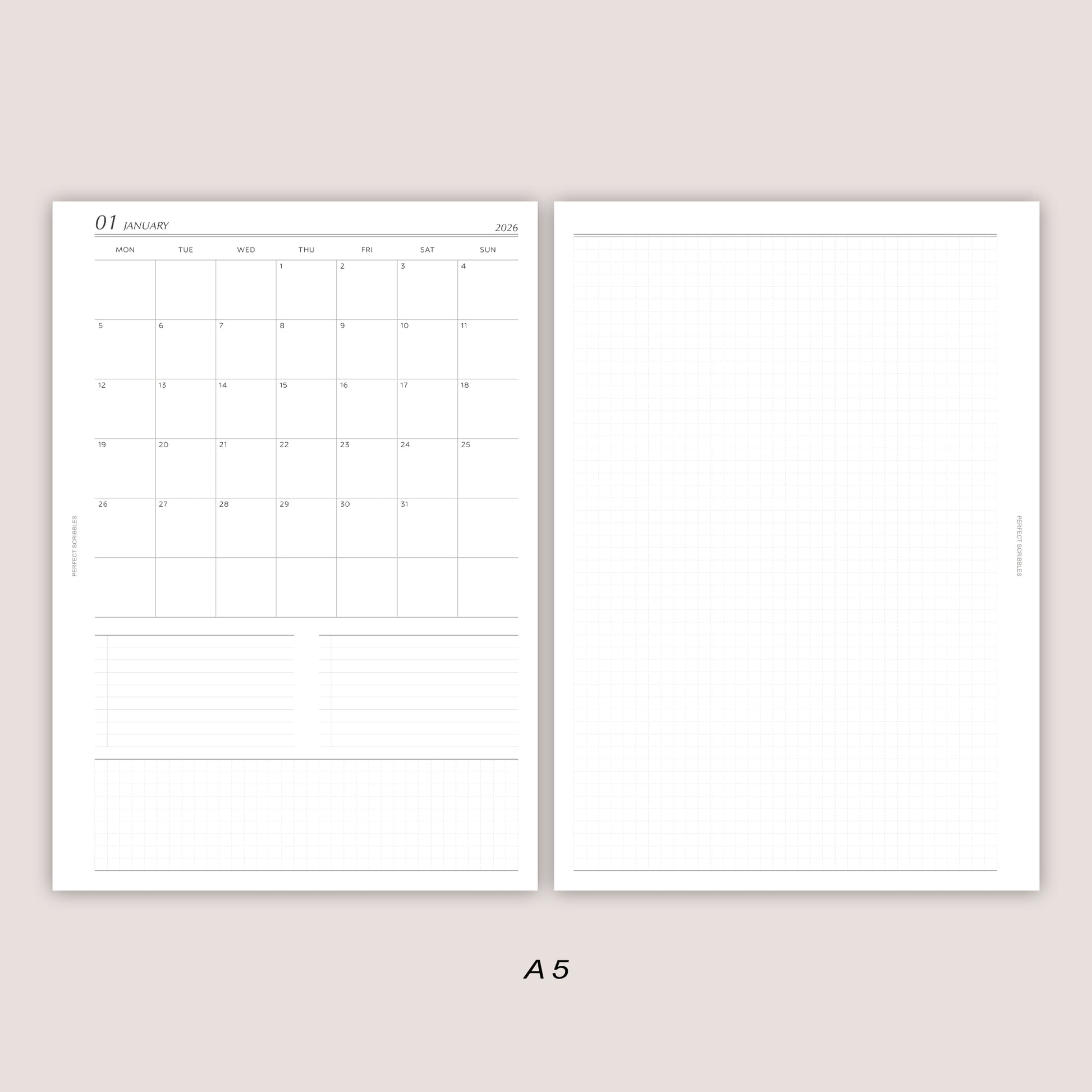 Get ready to make 2026 your most organised and creative year yet! These dated monthly planner inserts, month on one page with a simple, clean design, perfect for your personal creative touches.