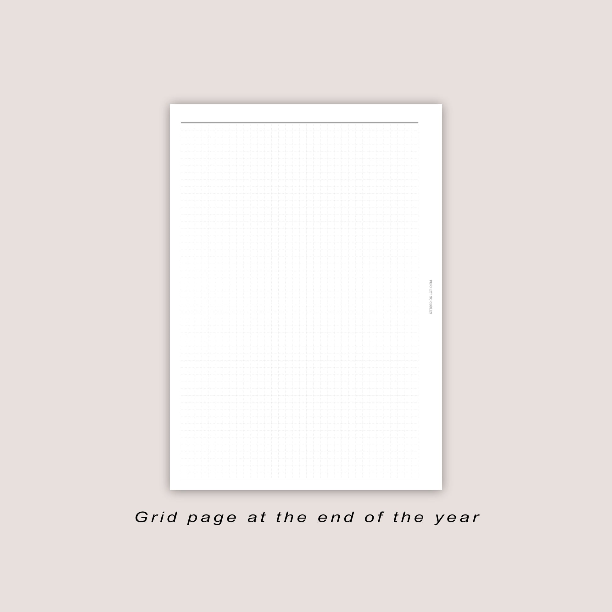 Month on one page design. Grid page on the back. Separable, can be added between other inserts.