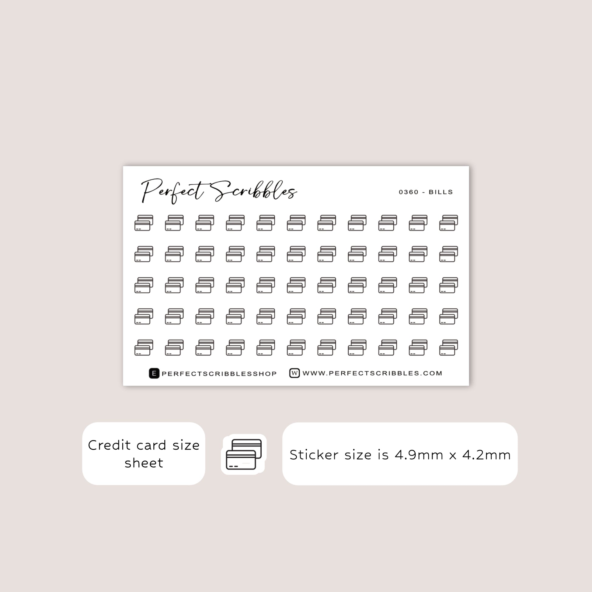 BILLS Tiny Icon Planner Stickers | Minimal | Credit card size sheet