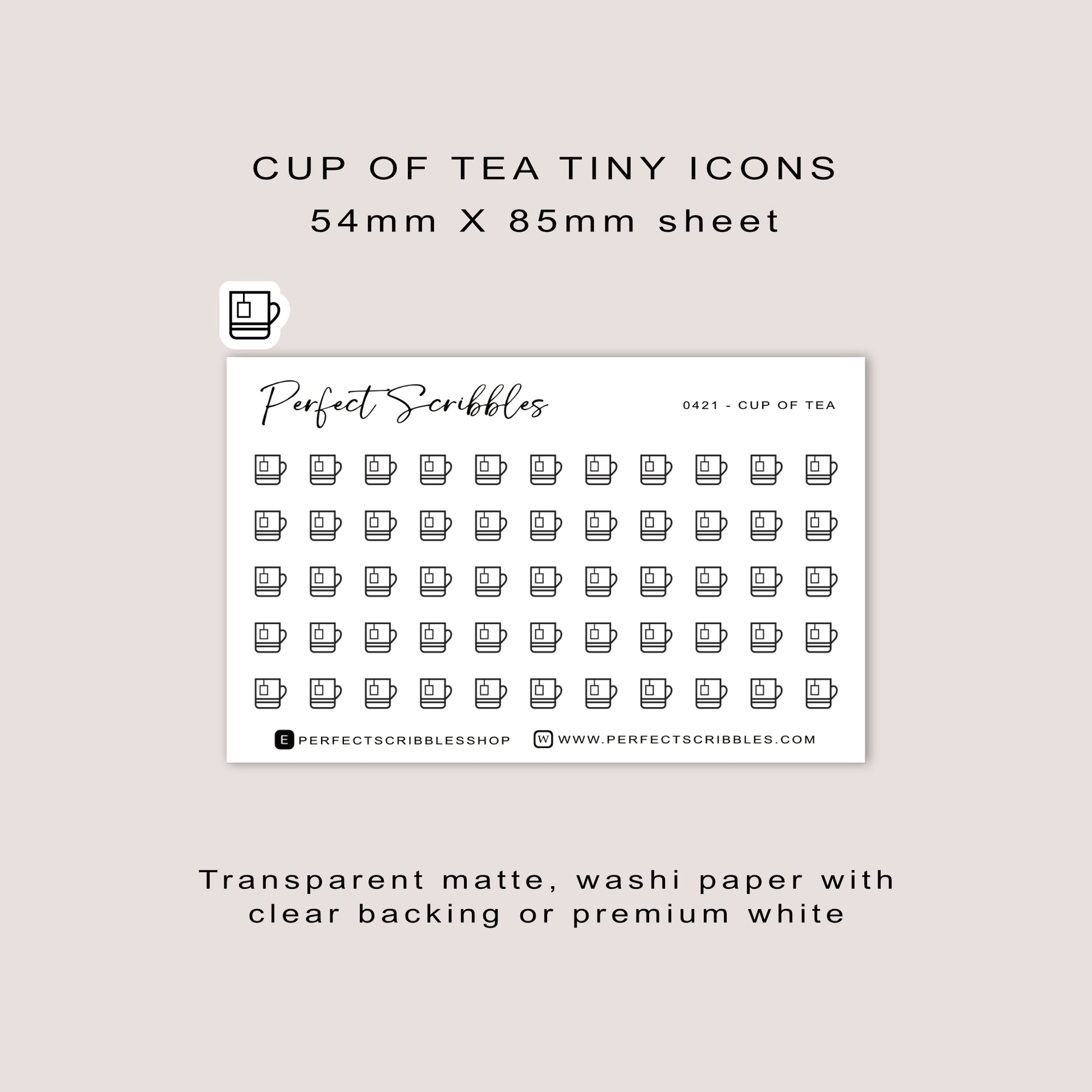 CUP OF TEA Tiny Icon Planner Stickers | Credit Card Sized Sheet