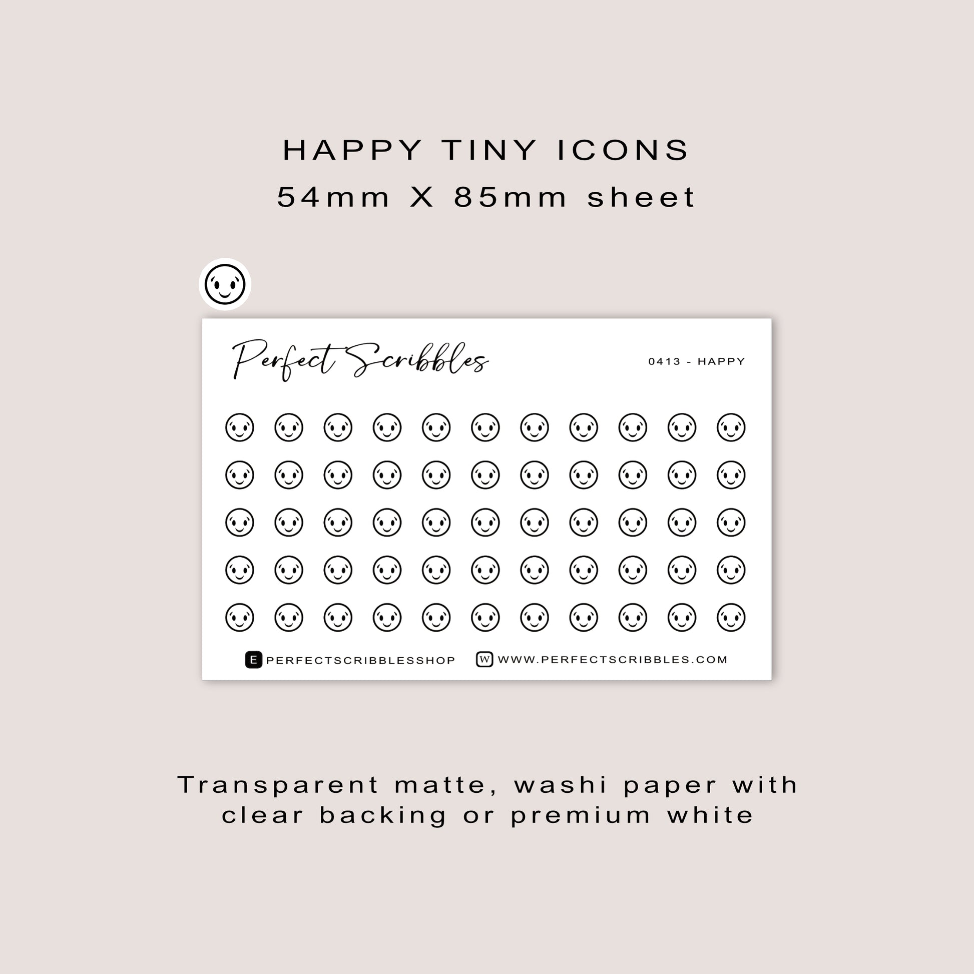 HAPPY tiny icon stickers. Functional icon stickers printed on sticker paper of your choice. Great for bullet journaling, highlighting events or memory keeping. Very minimal and functional.