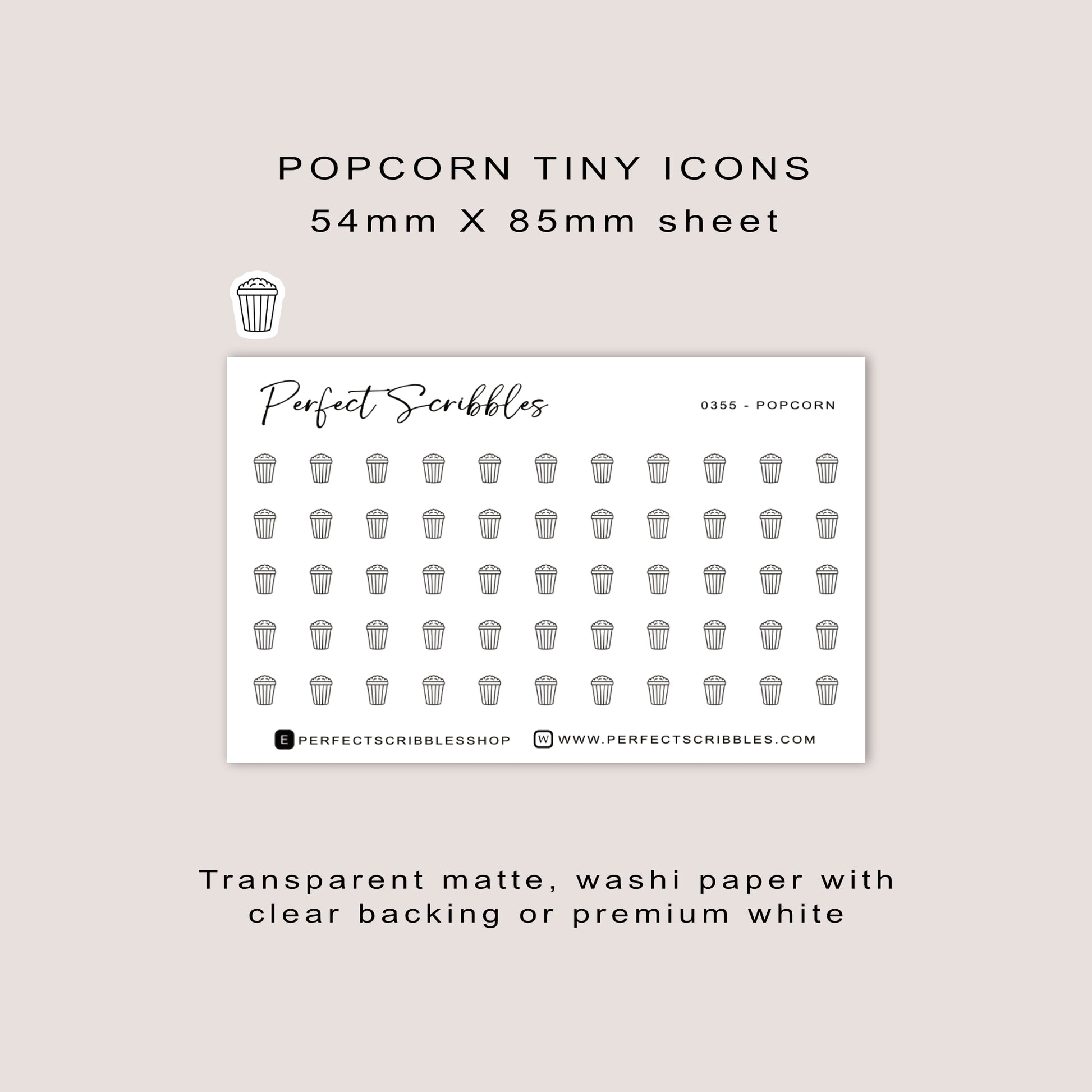 POPCORN tiny icon stickers. Functional icon stickers printed on sticker paper of your choice. Great for bullet journaling, highlighting events or memory keeping. Very minimal and functional.