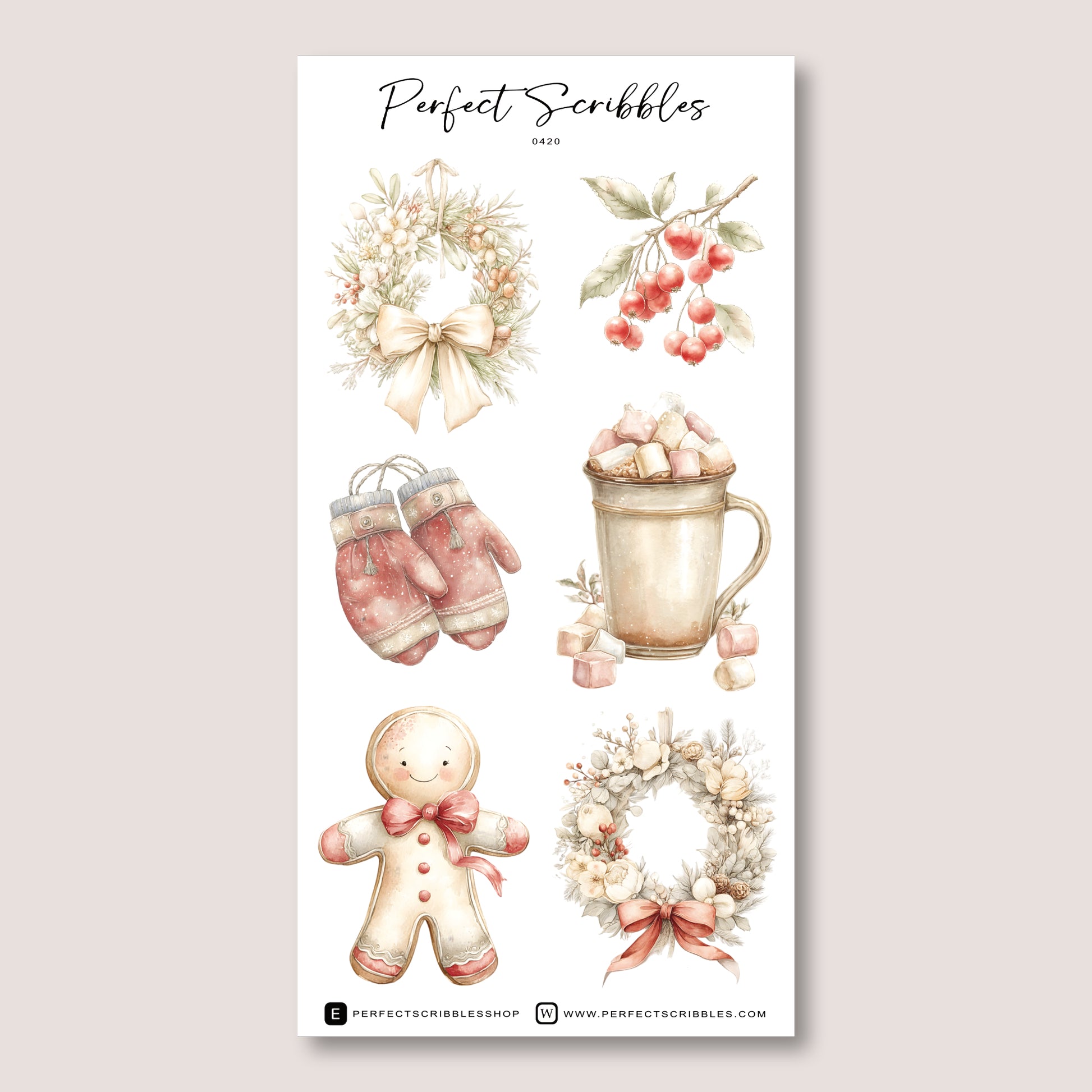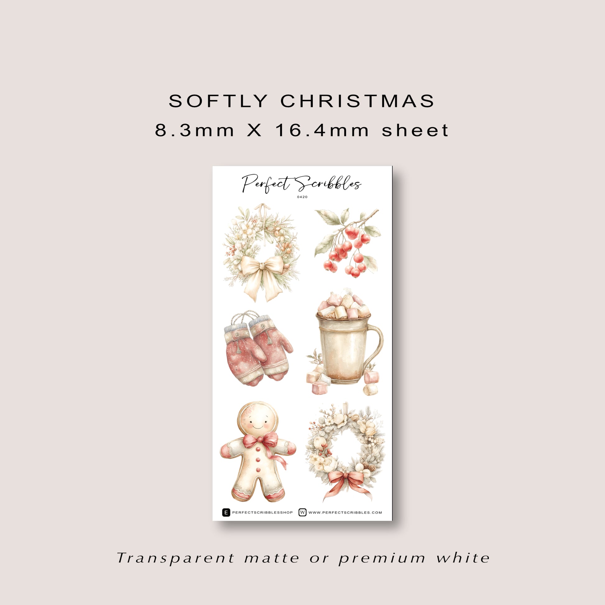 SOFTLY CHRISTMAS planner sticker deco collection, beautiful soft colours. Printed on sticker paper of your choice, washi paper, transparent matte or premium white. Great for adding a bit of decoration to your journal.