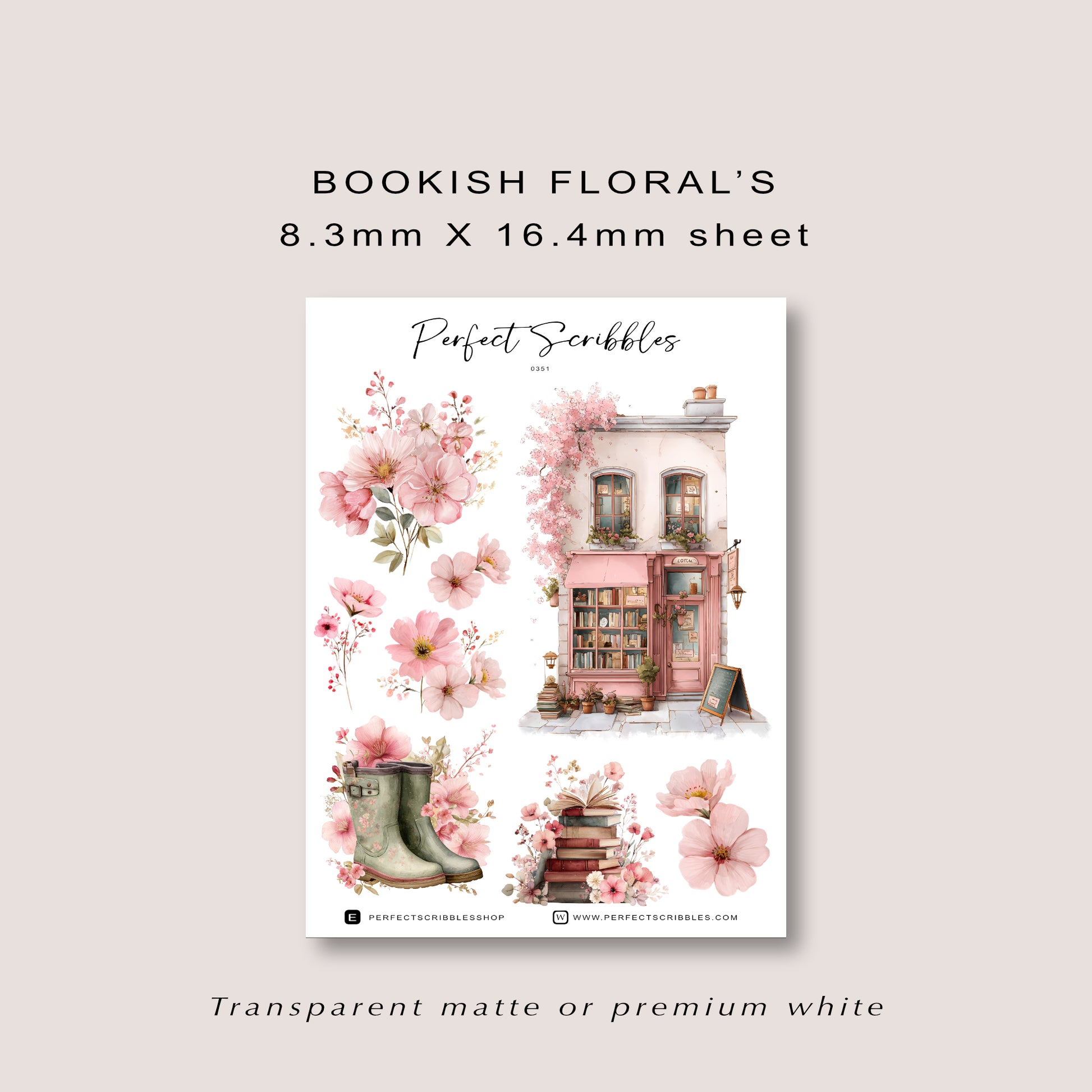 BOOKISH FLORALS planner sticker deco collection, beautiful soft colours. Printed on sticker paper of your choice, washi paper, transparent matte or premium white. Great for adding a bit of decoration to your journal.