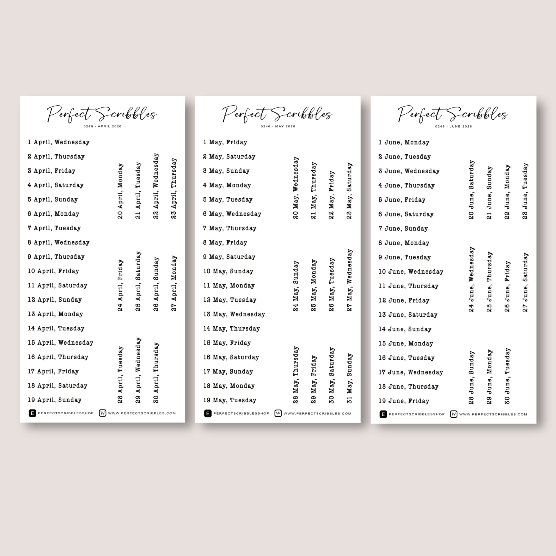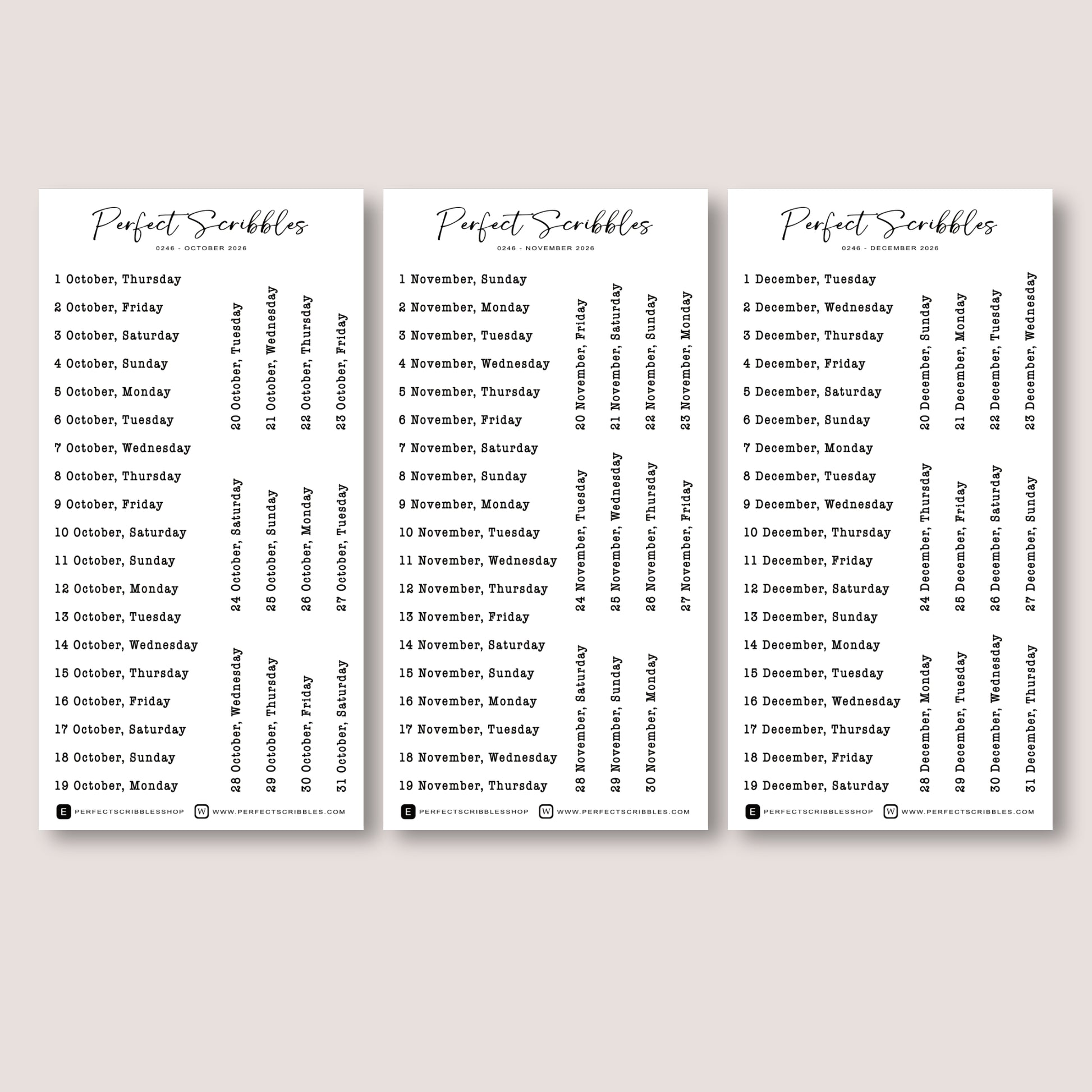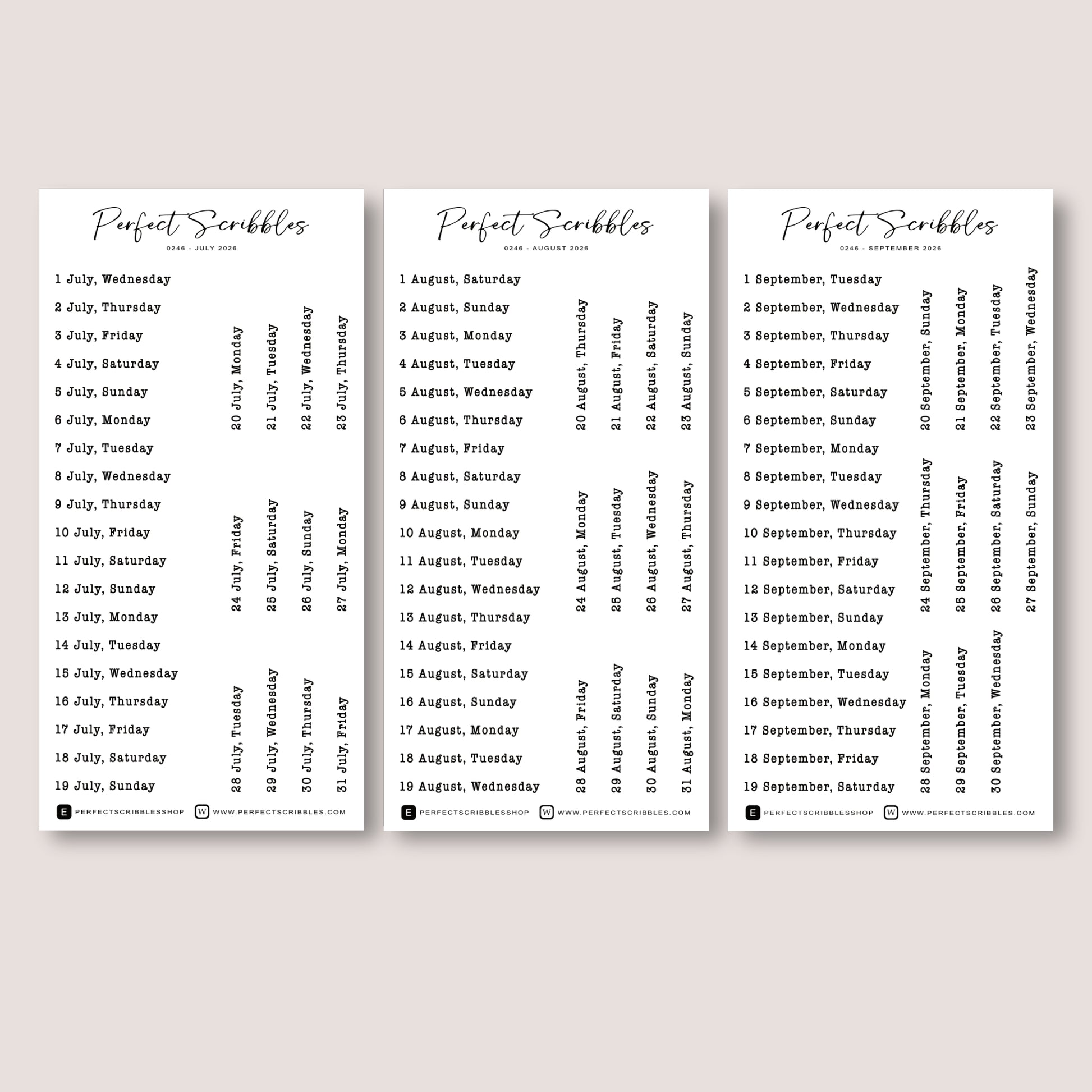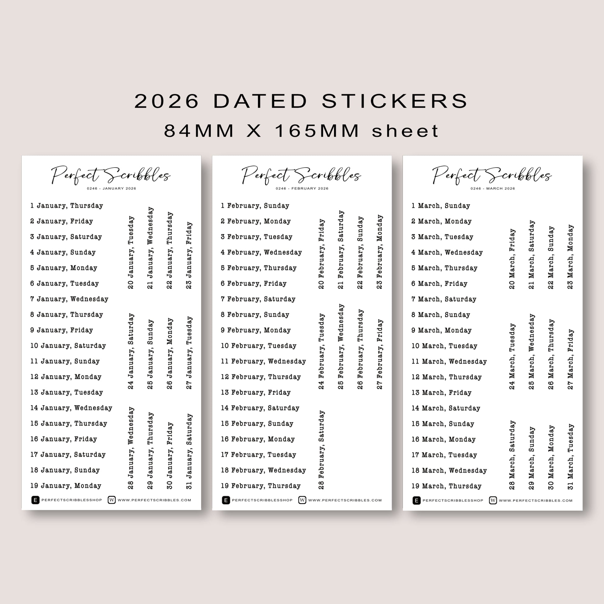Typewriter font 2026 dated planner stickers including date, day and month. Printed on sticker paper of your choice. Excellent for dating your journal entries.